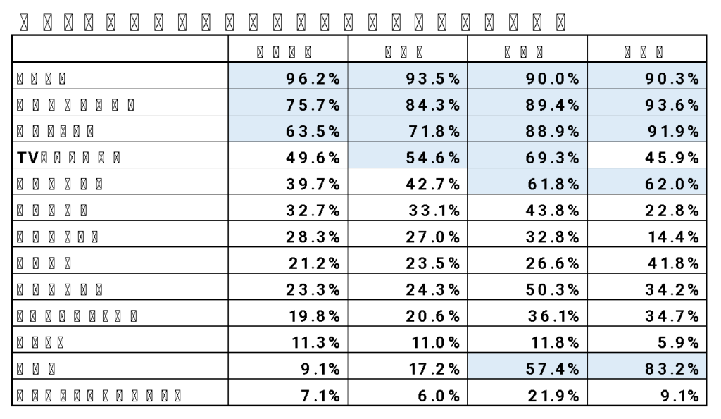 首都圏と地方都市では、設置率に差があります。地方都市では、温水洗浄便座、駐車場などは、必要最低限の設備ですが、首都圏では、そこまでは求められていないようです。